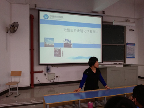 4月21号下午,我系“教学质量月”专题报告会《微型实验走进化学教学中》在求实楼CC401举行,全系师生一百多人参加,报告会由实验室副主任谢丹华老师主持。周美珍老师就微型实验的起源和发展、内涵和意义以及微型实验的应用等方面作了精彩的专题报告,报告中周老师还联系实际、结合实验室工作和实验活动,为学生讲述了如何用自制的微型仪器做实验以及微型实验仪器的使用,此外,她还介绍了国外一些教本的微型实验,让大家对微型实验有了更全面、深入的了解。——尤珠衩