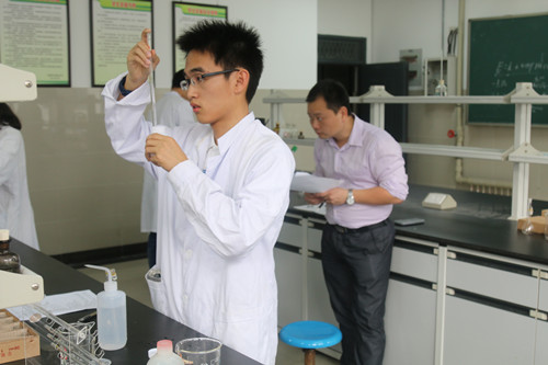 11月22日,化学系第二届化学实验基本技能大赛在化学系实验楼落下帷幕。此次竞赛针对2013、2014级学生展开,采用自愿报名、分年级组别参赛的形式。通过第一轮的笔试成绩并结合综合绩点排名,筛选出12名13级同学、14名14级同学进入实验操作比赛。在第二轮的比赛中,14级的操作项目为滴定分析实验——硫酸锌溶液中锌离子浓度的测定,13级的操作项目为电导法测定弱电解质电离度、分光光度法测定水样中铁离子的浓度。考核要点包括:基本实验操作技能、实验操作统筹安排、数据处理、结果分析、文明参赛等。