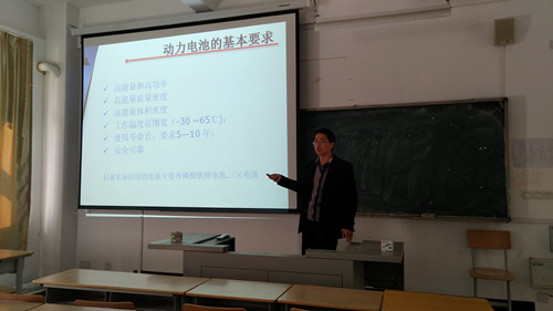 2015年12月10日下午2:30,新能源科技有限公司时玉帅高工应邀为我系师生做了一场题为《电动汽车动力电池管理系统研究进展》的讲座。讲座在求实楼CC401举行,由化学系游东宏书记主持,化学系教师和应用化学专业学生参加。