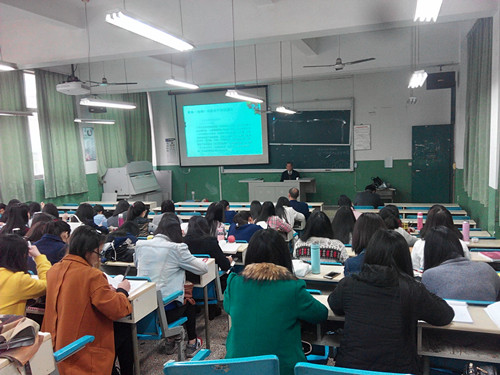 为丰富我校第七届教学质量月活动内容,化学系原党支部书记、退休教师吴春老师于2016年4月18日在21楼201教室为化学系和教育系师生开设了《漫步古诗与化学之缘》的跨学科公益讲座。讲座由化学系游东宏书记主持。吴春老师兴趣广泛,退休后利用空余时间钻研古诗,先后出版多本诗集。