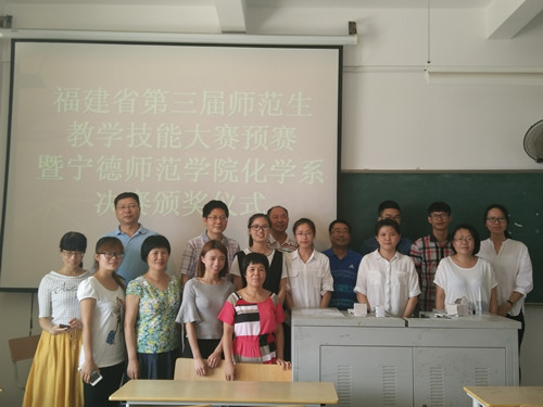 6月11日上午,福建省第三届师范生教学技能大赛预赛暨宁德师范学院化学系师范生教学技能大赛于求实楼CB401举行。本次比赛共邀请到在校内外长期从事教学一线工作、赛事经验丰富的9位老师担任此次大赛的评委。