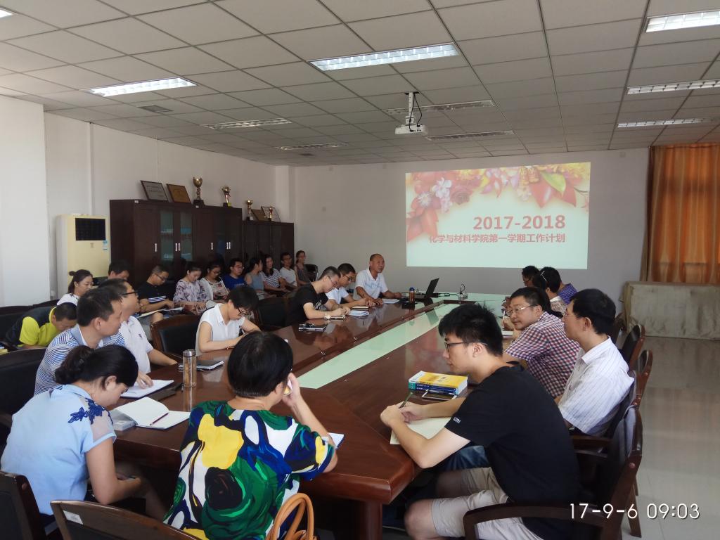 化学与材料学院于9月6日上午在学院会议室召开了本学期初的工作部署会议,全体教职员工参加了会议。