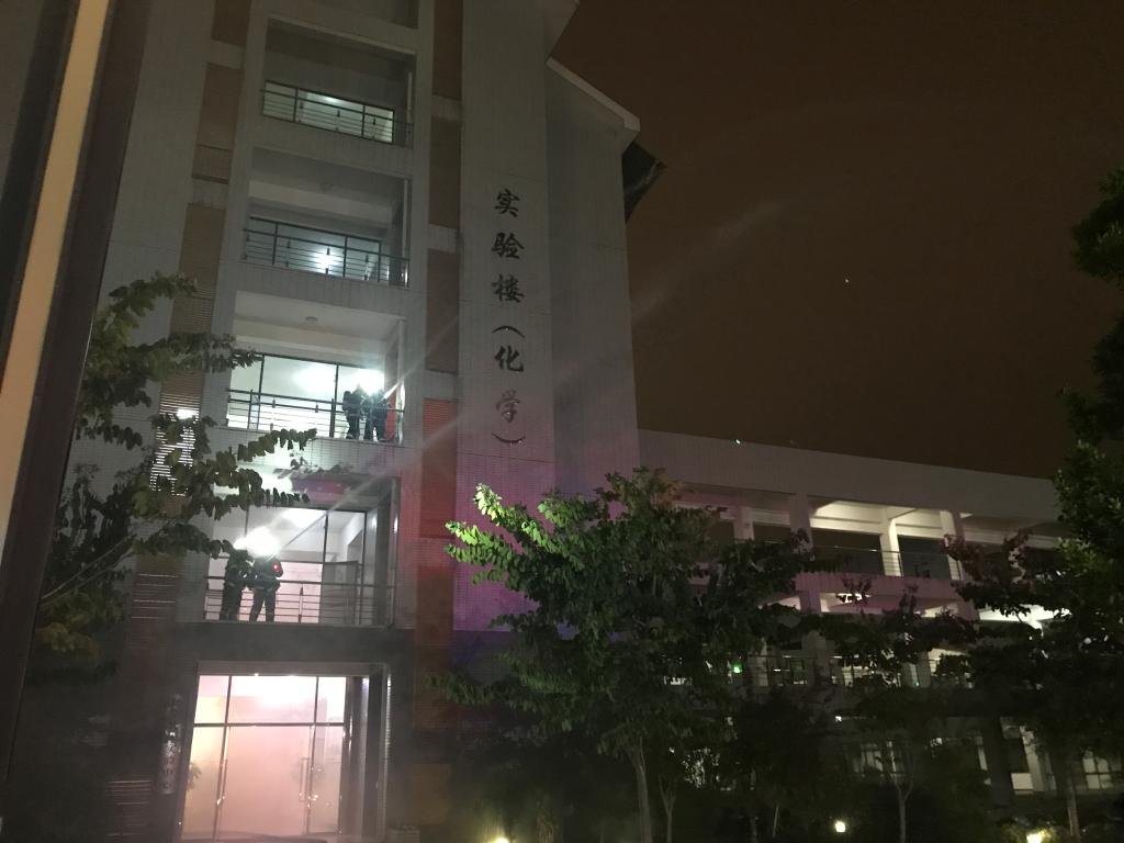 实验楼里烟雾弥漫,浓烟滚滚,消防车警笛此起彼伏,消防官兵和保卫干事正忙碌地指挥着,师生们有条不紊地进行疏散......11月6日晚化学与材料学院联合校保卫处配合宁德公安消防队特勤中队开展了一场消防疏散演练。消防疏散演练在化学实验楼进行,模拟学院同学晚上在实验室上课过程意外失火后报警逃生,有序疏散的场景。化学与材料学院部分师生参与了演练。通过演练,更好全面地普及了消防知识,强化了全体师生对疏散路线和疏散要求的记忆,提高了师生们的安全意识和警惕性,取得良好效果。