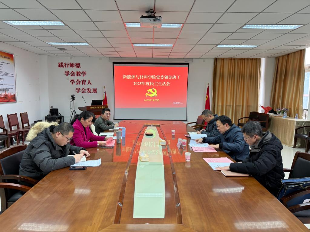 1月23日上午,新能源与材料学院党委召开党委领导班子2025年度民主生活会。校党委督导组莅临指导,会议由学院党委书记郭赛玉主持,学院党委领导班子全体成员参加。