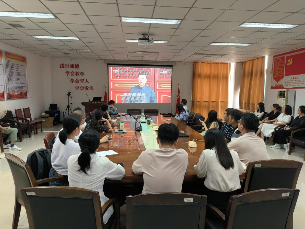 2025年9月3日上午,新能源与材料学院党委在求实楼D401会议室组织全体教职工、部分在校学生集中收看纪念中国人民抗日战争暨世界反法西斯战争胜利80周年大会。学院党委书记郭赛玉、院长黄晓辉、党委副书记彭东翔、副院长黄仁昆等班子成员与师生共同见证这一庄严时刻。