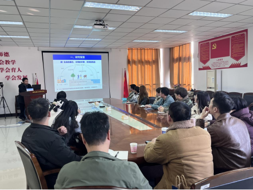 2025年12月26日下午,福州大学龙金林研究员在CD401教室,为我院全体教师和联培研究生开设“光工产碳循环和植物光合作用人工增效”主题讲座。讲座由黄晓辉院长主持。